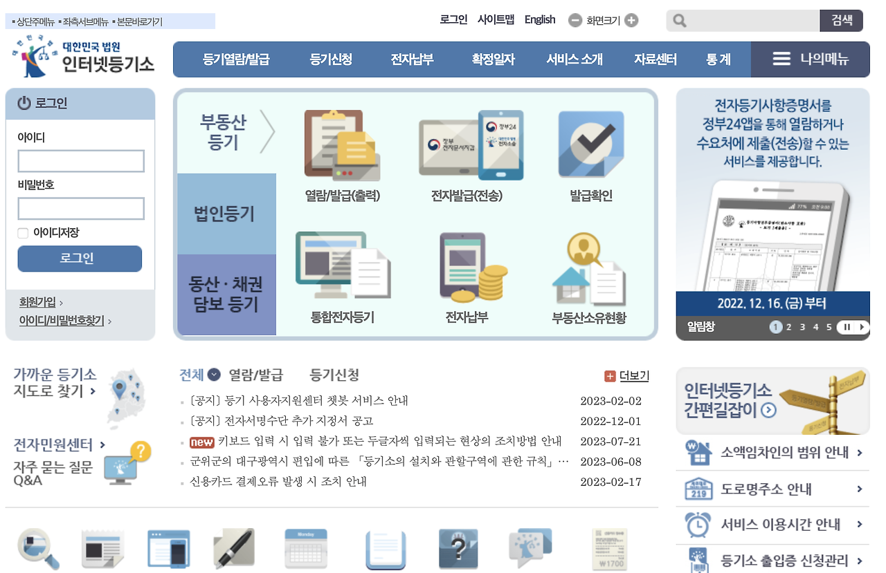 1. 인터넷 등기소 접속: 인터넷 등기소 웹사이트에 접속합니다.
