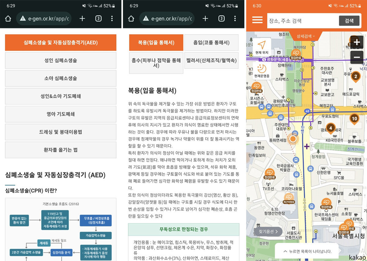 또한, 야간진료기관 정보, 자동심장충격기(AED) 위치 정보, 응급처치 요령 등 응급상황에서 유용한 정보도 담겨 있는데 E-Gen 앱 사용하는 방법에 대해서 알아보도록 하겠습니다.