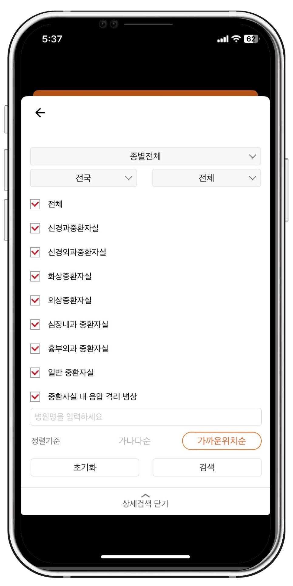 2.응급실 조건검색: 가까운 응급실뿐만 아니라 종류, 지역, 진료실 등 조건에 맞는 응급실 검색하여 쉽게 찾아보실 수 있습니다.