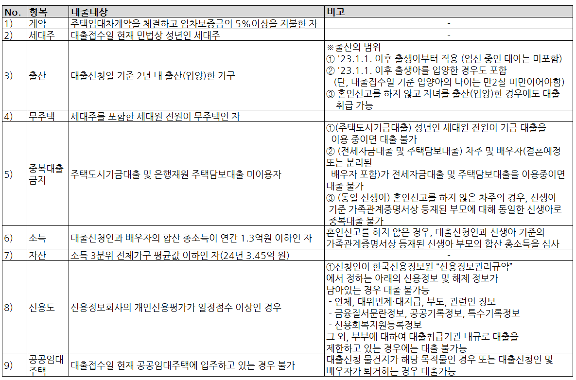 신생아 특례 버팀목 전세자금 대출대상(세부내용)