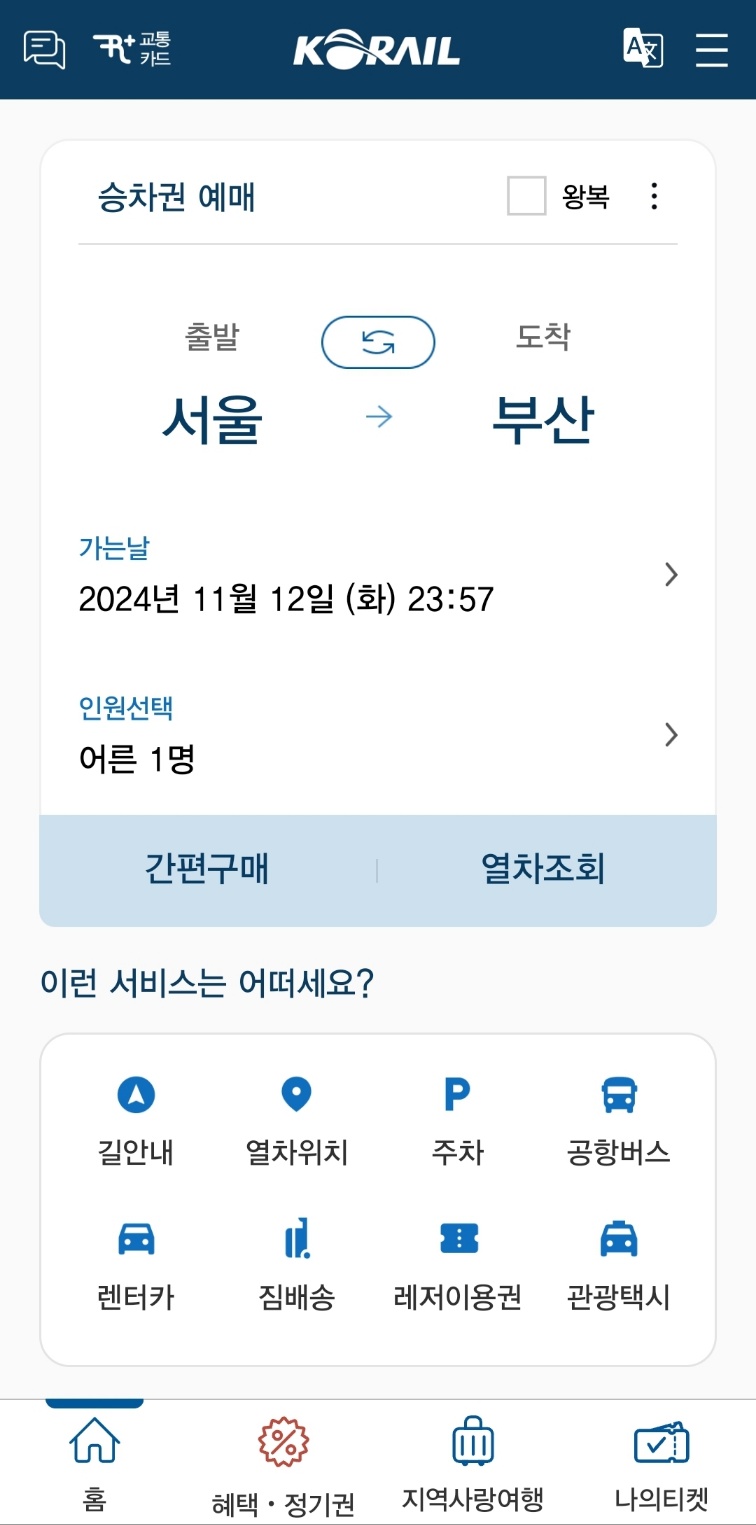1. 코레일 홈페이지 예매