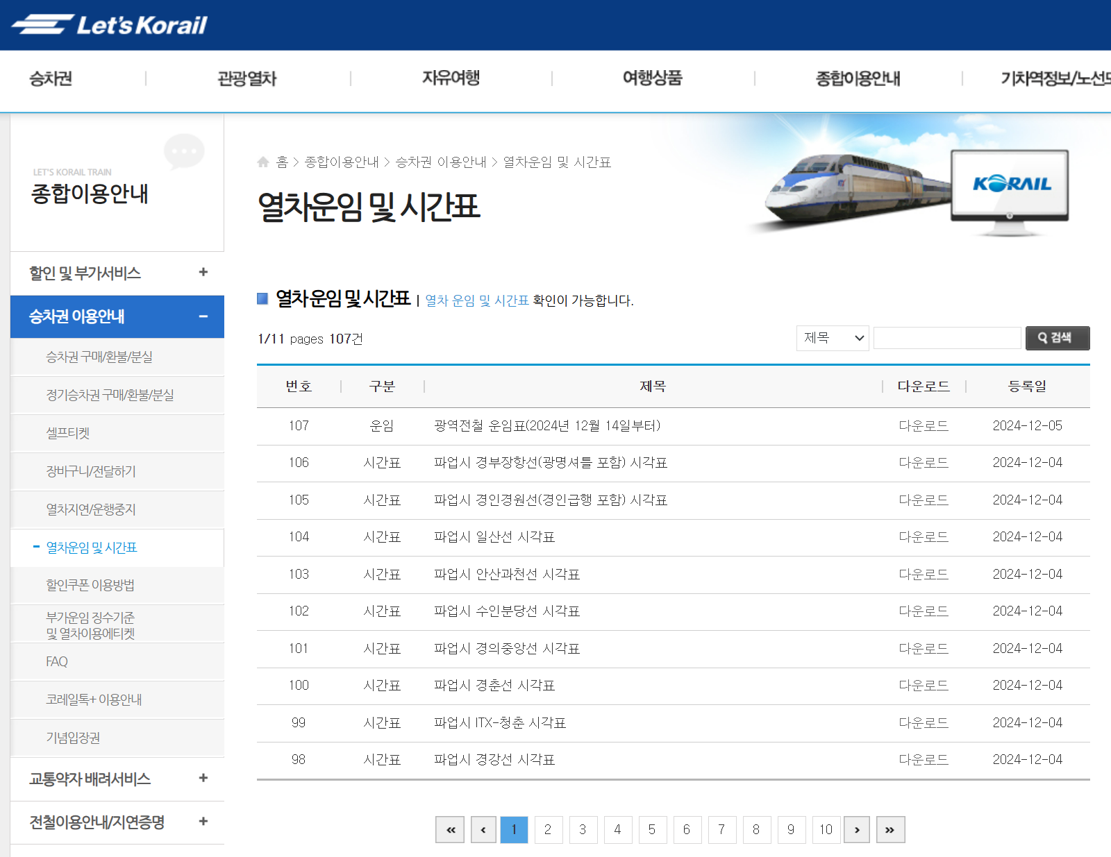 렛츠코레일 홈페이지에 들어가시면 철도파업 실시간 지하철, 기차 열차 시간표 확인해보실 수 있습니다.