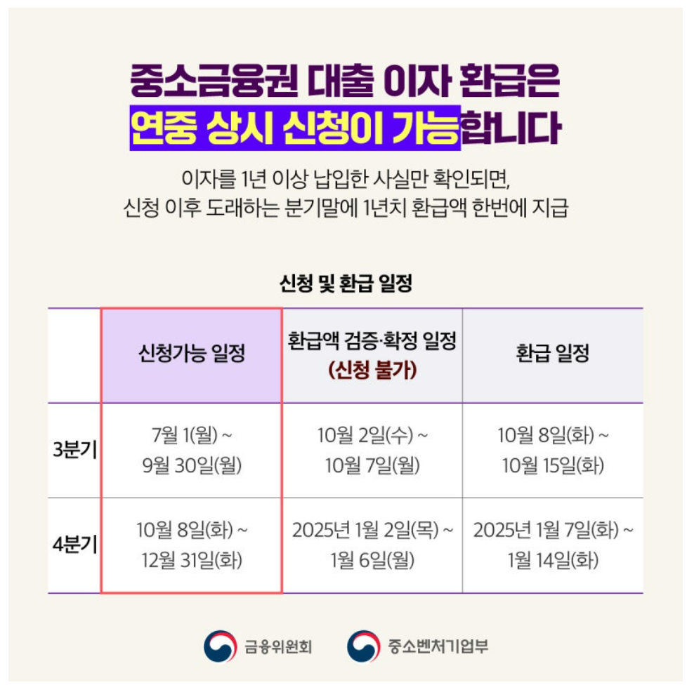 중소금융권 대출 이용 이자 환급 신청방법