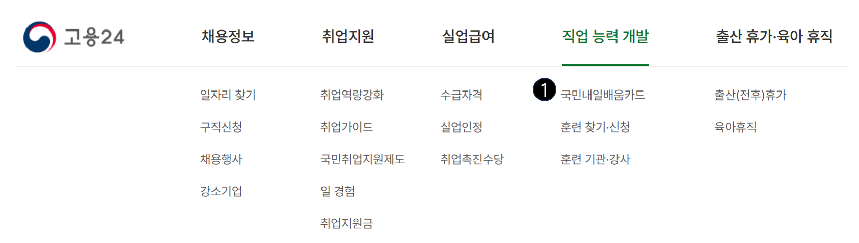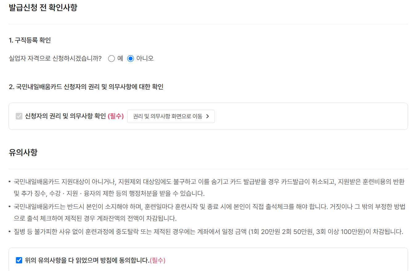 1.고용24 → 직업 능력 개발 → 국민내일배움카드 (발급 신청)