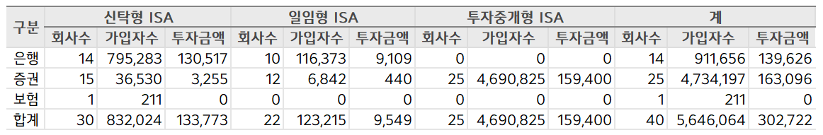 ISA계좌 종류별 가입현황