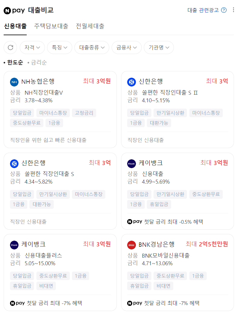 네이버페이 신용대출비교