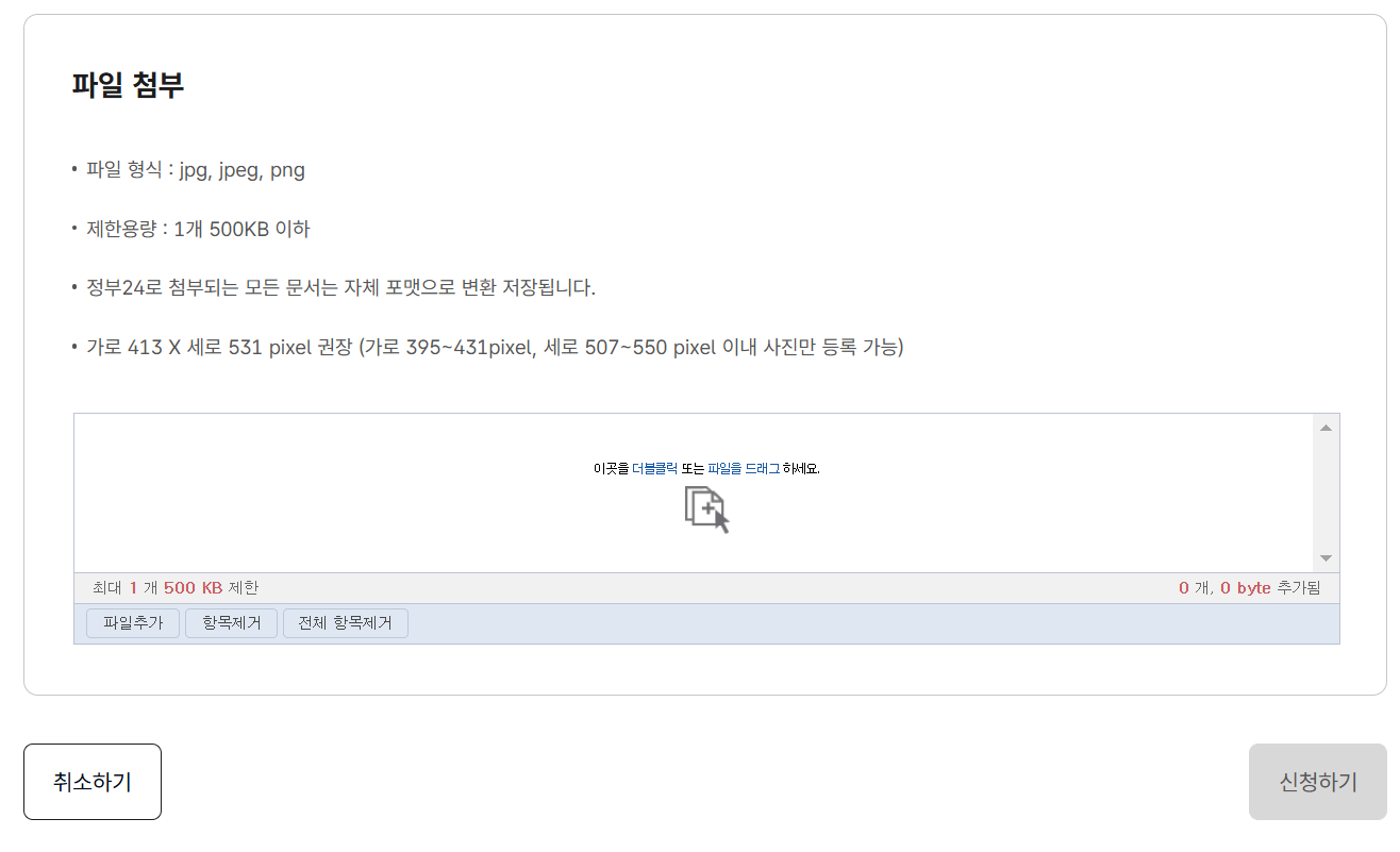 4.마지막으로 사진을 첨부하고 신청을 하시면 됩니다.